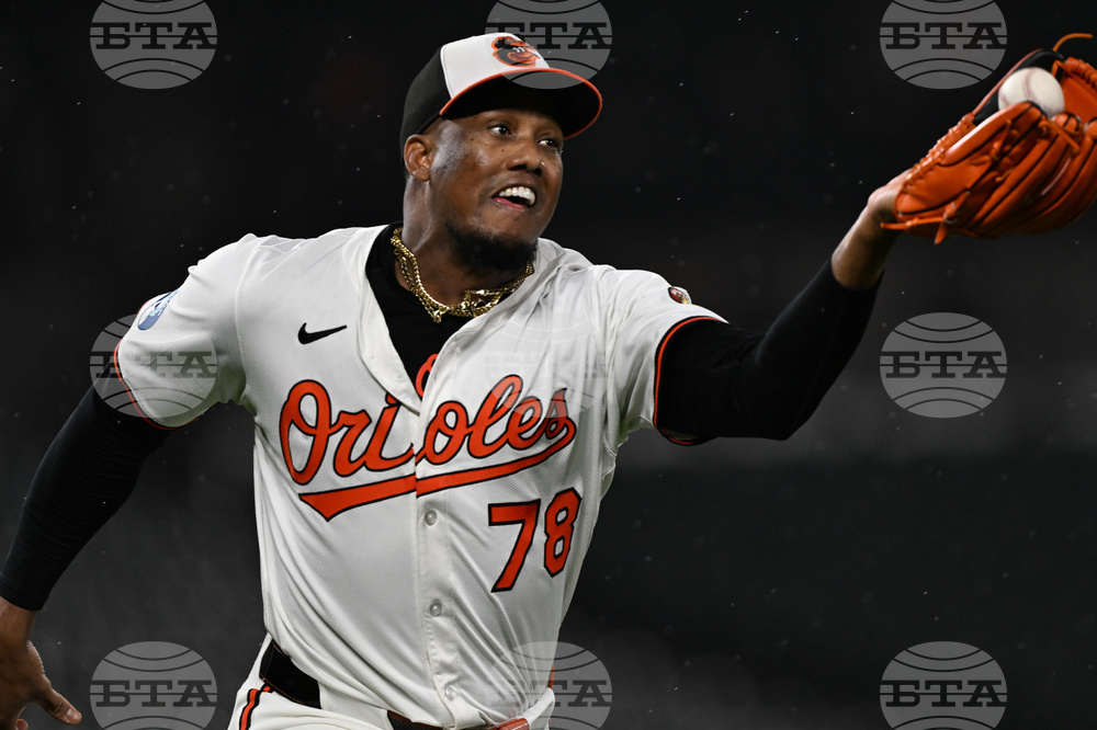 Baltimore Orioles pitcher Yennier Cano throws against the Tampa Bay Rays in the ninth inning of a baseball game, Wednesday, Sept. 24, 2025, in Baltimore. (AP Photo/Gail Burton)