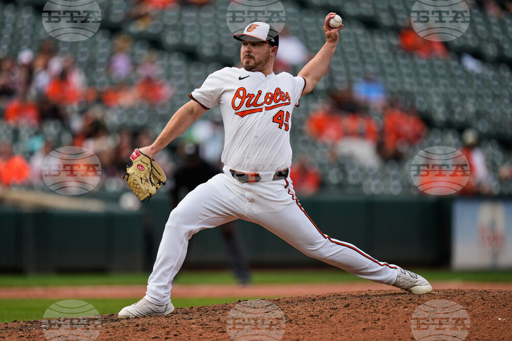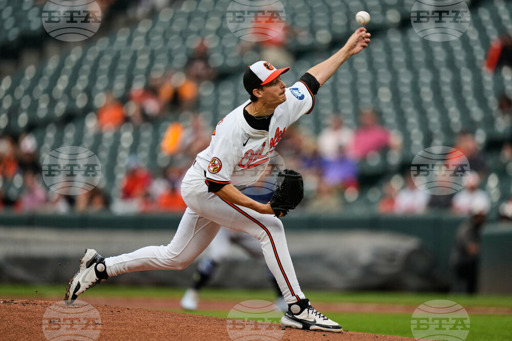 Baltimore Orioles pitcher Tyler Wells throws against the Tampa Bay Rays in the first inning of a baseball game, Wednesday, Sept. 24, 2025, in Baltimore. (AP Photo/Gail Burton)