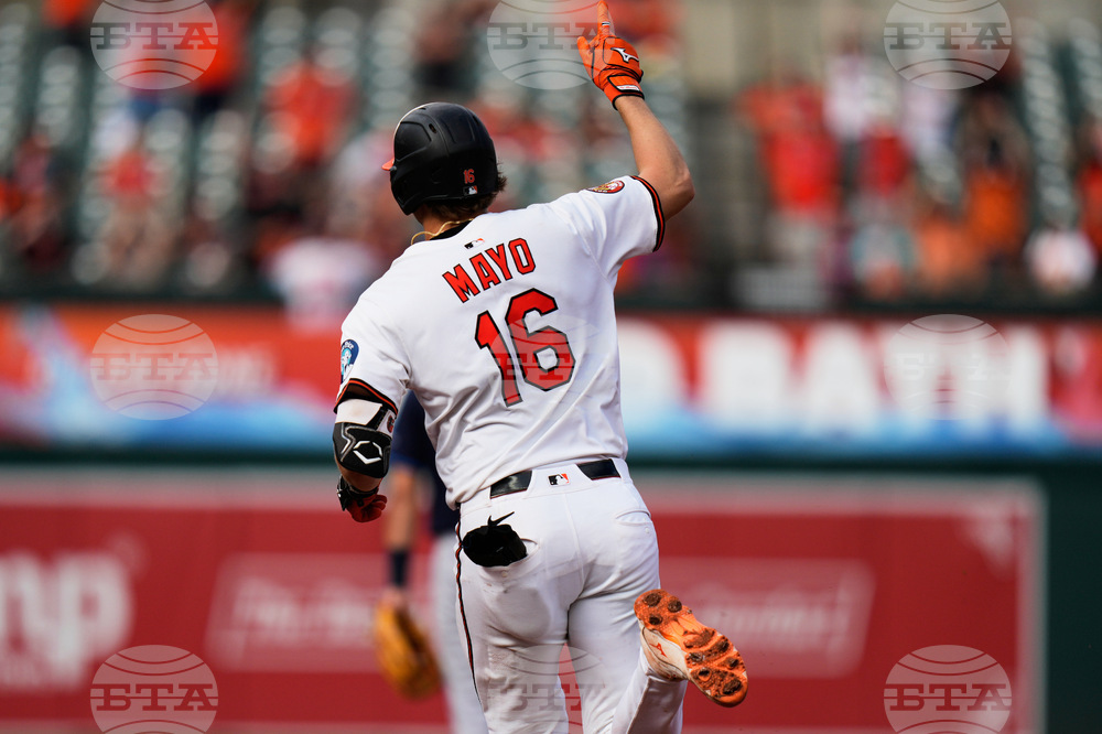 Baltimore Orioles' Coby Mayo (16) rounds the bases after hitting a two-run home run during the eighth inning of a baseball game against the Tampa Bay Rays, Thursday, Sept. 25, 2025, in Baltimore. (AP Photo/Stephanie Scarbrough)
