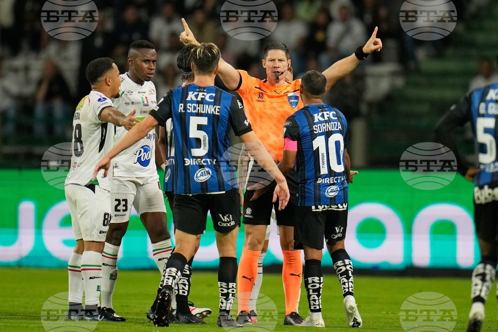 Players of Colombia's Once Caldas arrive to the Palo Grande stadium prior to their Copa Sudamericana quarterfinal second leg soccer match against Ecuador's Independiente del Valle in Manizales, Colombia, Wednesday, Sept. 24, 2025. (AP Photo/Fernando Vergara)