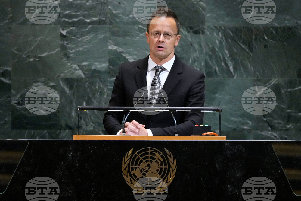 Minister for Foreign Affairs and Trade of Hungary Péter Szijjártó addresses the 80th session of the United Nations General Assembly, Wednesday, Sept. 24, 2025, at U.N. headquarters. (AP Photo/Pamela Smith)