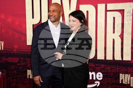 Thomas Jane and Courtney Lauren Penn attend the world premiere of Prime Video's "Play Dirty" at the SVA Theatre on Wednesday, Sept. 24, 2025, in New York. (Photo by Charles Sykes/Invision/AP)