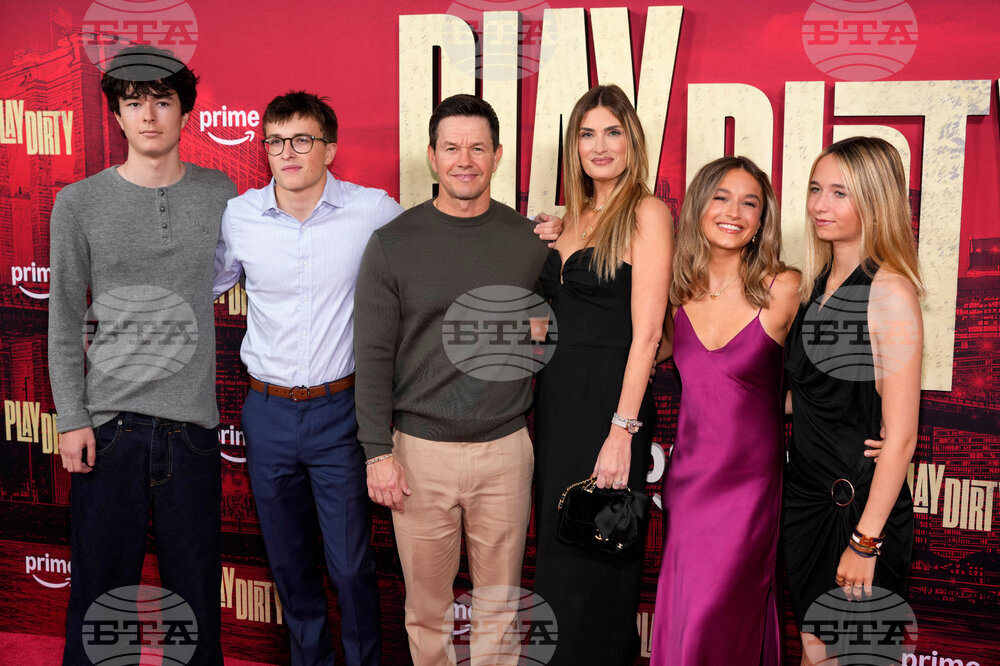 Brendan Wahlberg, from left, Michael Wahlberg, Mark Wahlberg, Rhea Durham, Ella Wahlberg and Grace Wahlberg attend the world premiere of Prime Video's "Play Dirty" at the SVA Theatre on Wednesday, Sept. 24, 2025, in New York. (Photo by Charles Sykes/Invision/AP)
