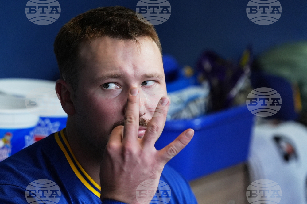 Seattle Mariners designated hitter Cal Raleigh sits in the dugout before a baseball game against the Colorado Rockies, Thursday, Sept. 25, 2025, in Seattle. (AP Photo/Ryan Sun)