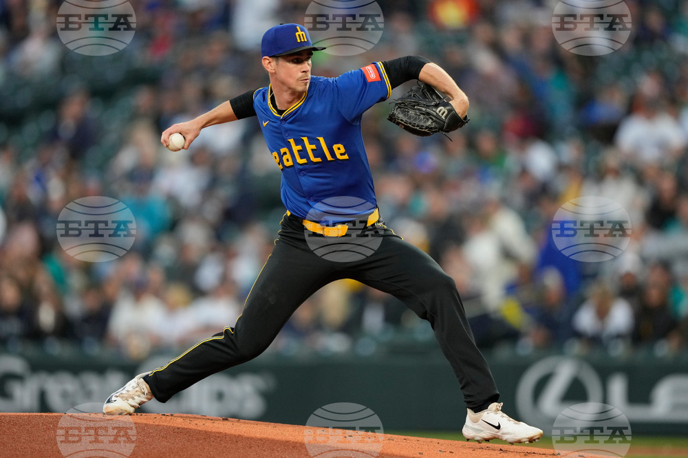 Seattle Mariners starting pitcher Emerson Hancock throws during the first inning of a baseball game against the Colorado Rockies, Thursday, Sept. 25, 2025, in Seattle. (AP Photo/Ryan Sun)
