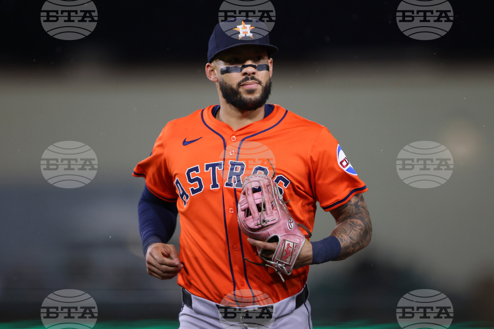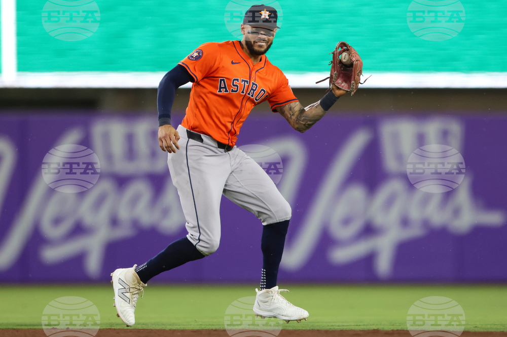 Houston Astros shortstop Carlos Correa heads towards the dugout after the final out of the fourth inning of a baseball game against the Athletics, Wednesday, Sept. 24, 2025, in West Sacramento, Calif. (AP Photo/Scott Marshall)