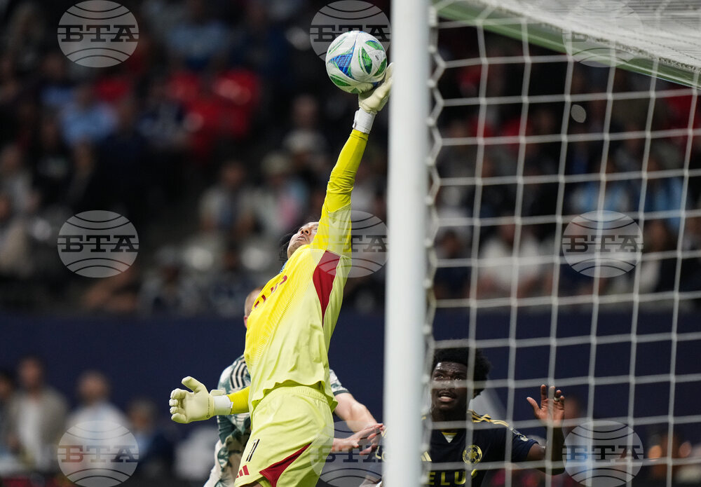 Vancouver Whitecaps' goalkeeper Yohei Takaoka makes a save off a corner kick during the first half of an MLS soccer match against the Portland Timbers in Vancouver, British Columbia, Wednesday, Sept. 24, 2025. (Darryl Dyck/The Canadian Press via AP)
