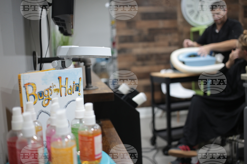 Jacob Anthon demonstrates the use of an FDA-cleared device that uses a combination of airflow temperature, speed, and direction to kill lice and eggs at Lice Clinics of America in Sugar Land, Texas, Monday, Sept. 22, 2025. (AP Photo/Lekan Oyekanmi)