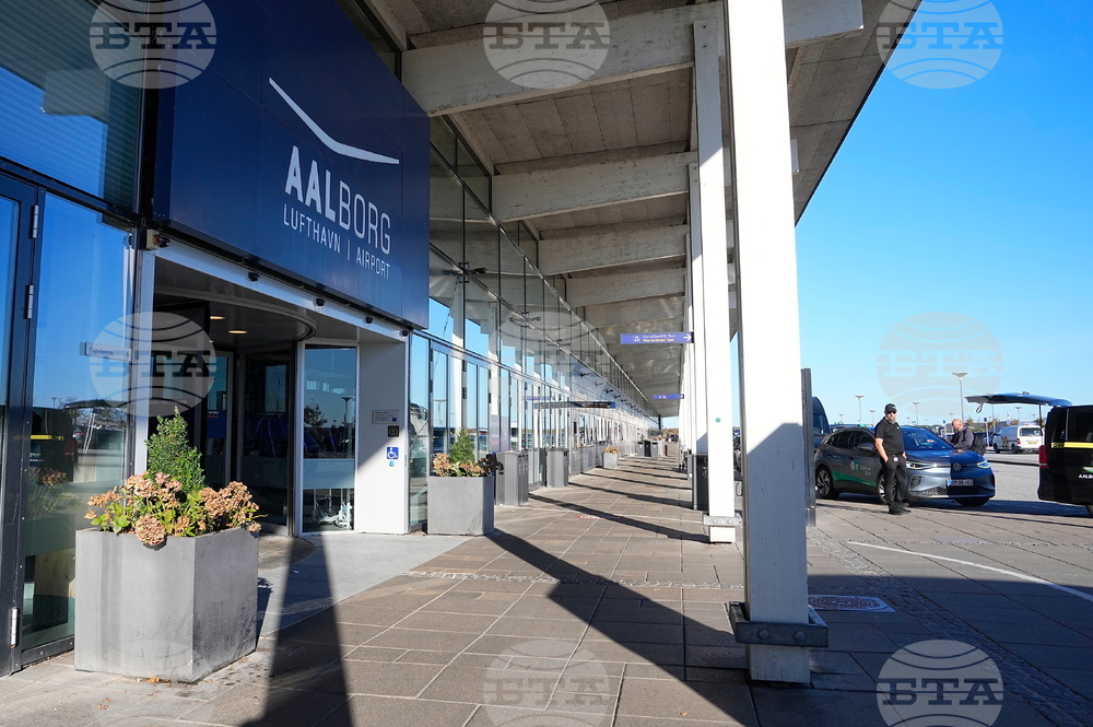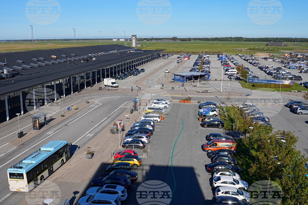 Aalborg Airport on Thursday, Sept. 25, 2025, after drones were observed on the airport on Wednesday evening and the night to Thursday, and the airspace over the airport was closed. (Bo Amstrup/Ritzau Scanpix via AP)