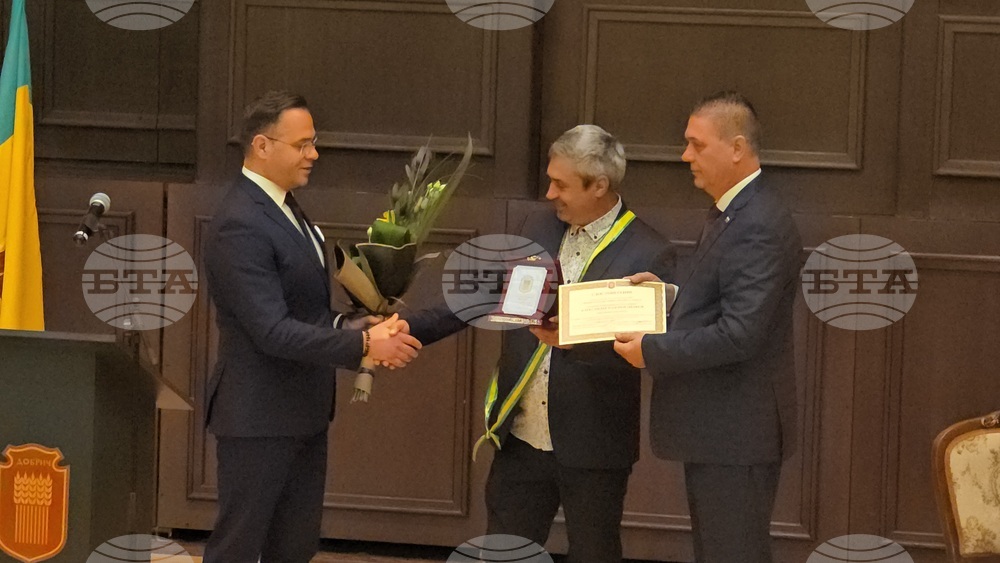 Добрич (25 септември 2025) Председателят на Фондация „Милостиво сърце“ Александър Иванов и собственикът и изпълнителен директор на „Добруджански хляб“ АД Енчо Малев бяха удостоени със званието "Почетен гражданин" на Добрич на тържествено заседание на Общинския съвет по случай празника на града. На снимката: кметът на Добрич Йордан Йорданов.