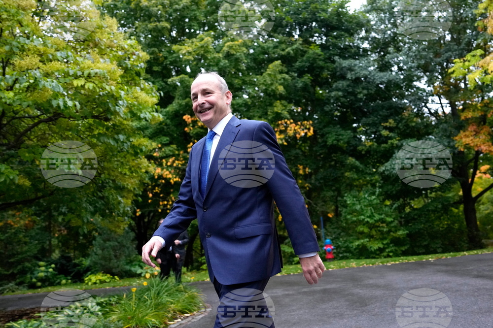 Micheal Martin, Taoiseach of Ireland, arrives at Rideau Cottage, the residence of Prime Minister Mark Carney, for a meeting in Ottawa on Thursday, Sept. 25, 2025. (Justin Tang /The Canadian Press via AP)