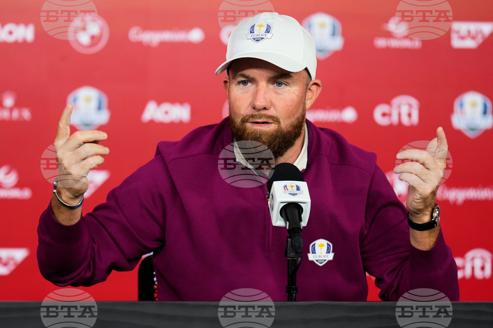Europe's Shane Lowry speaks during a news conference at the Ryder Cup golf tournament, Thursday, Sept. 25, 2025, on the Bethpage Black golf course, in Farmingdale, N.Y. (AP Photo/Seth Wenig)