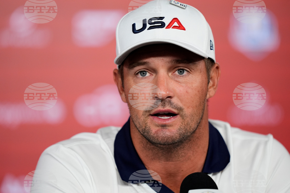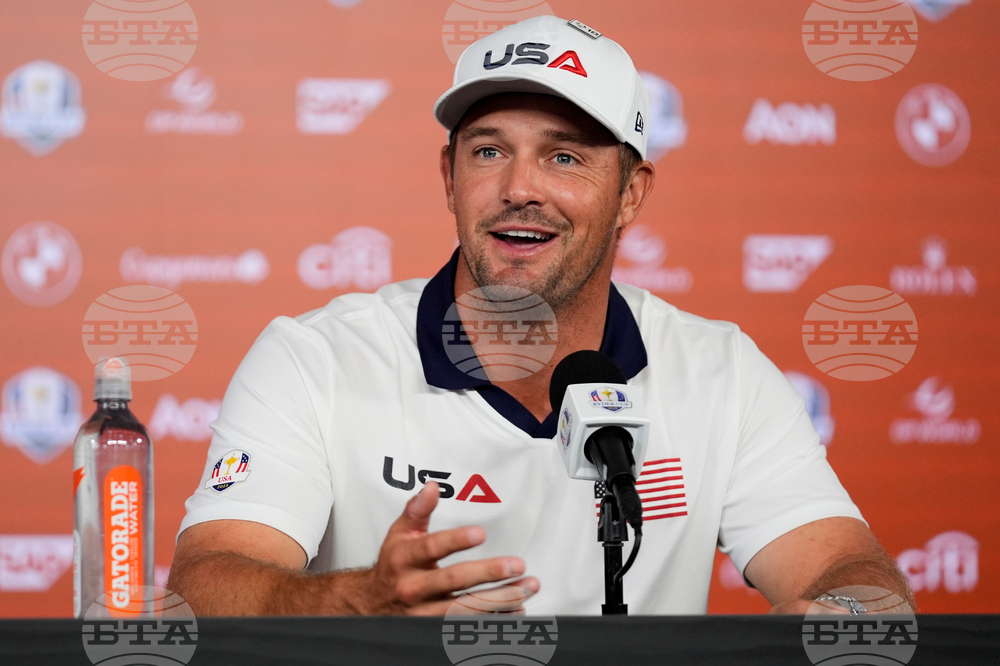 United States' Bryson DeChambeau speaks during a news conference at the Ryder Cup golf tournament, Thursday, Sept. 25, 2025, on the Bethpage Black golf course, in Farmingdale, N.Y. (AP Photo/Robert Bukaty)