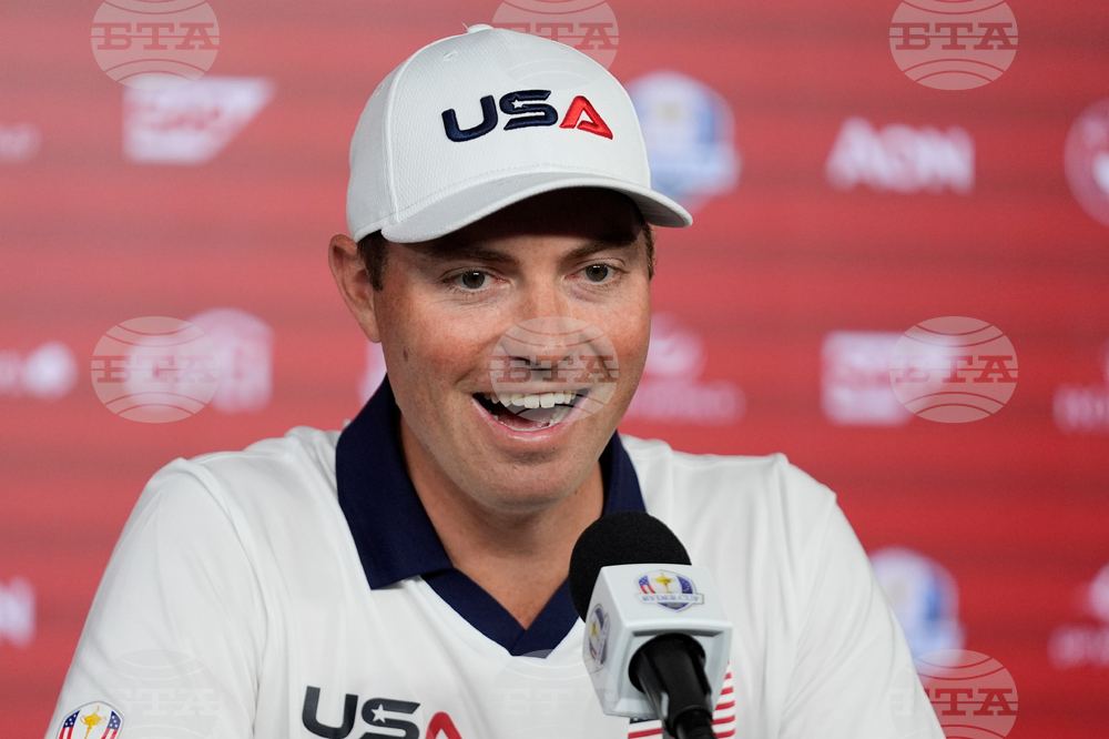 United States' Sam Burns speaks during a news conference at the Ryder Cup golf tournament, Thursday, Sept. 25, 2025, on the Bethpage Black golf course, in Farmingdale, N.Y. (AP Photo/Robert Bukaty)