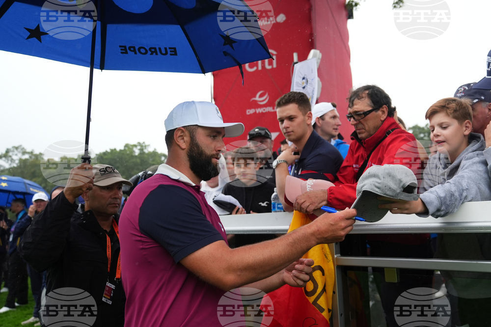 Europe's Jon Rahm signs on the sixth hole during a practice round at the Ryder Cup golf tournament, Thursday, Sept. 25, 2025, on the Bethpage Black golf course, in Farmingdale, N.Y. (AP Photo/Lindsey Wasson)