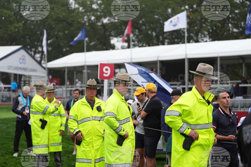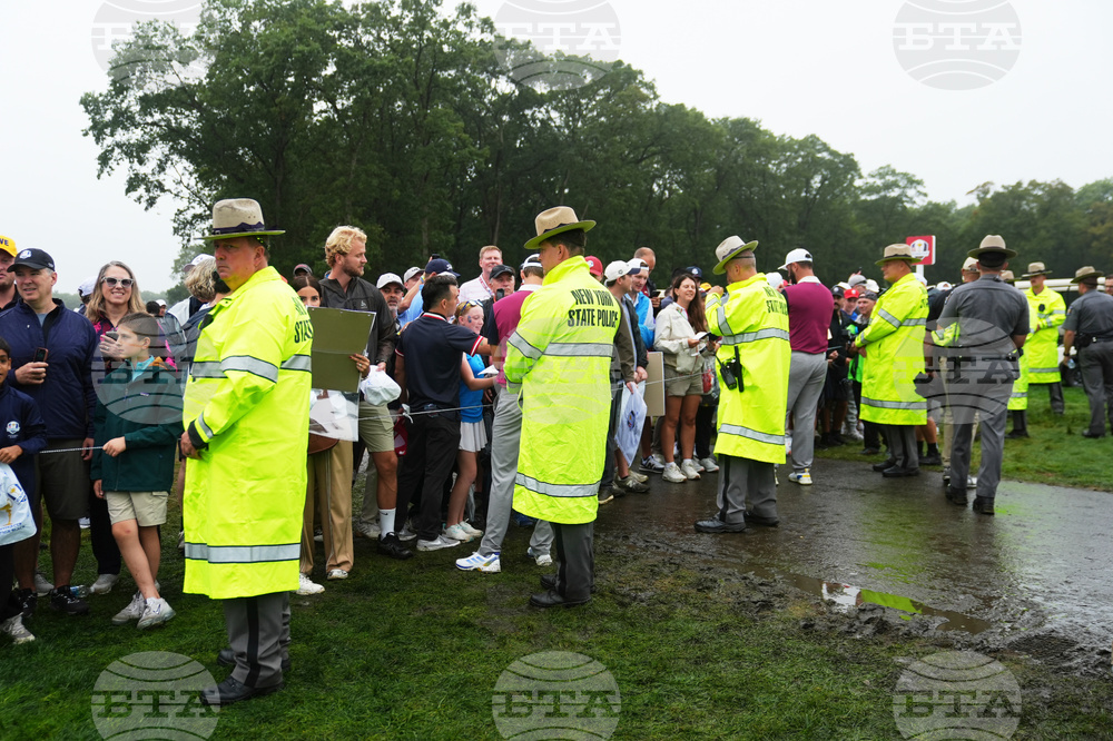 New York State Park Police watch the crowd during a practice round at the Ryder Cup golf tournament, Thursday, Sept. 25, 2025, on the Bethpage Black golf course, in Farmingdale, N.Y. (AP Photo/Lindsey Wasson)