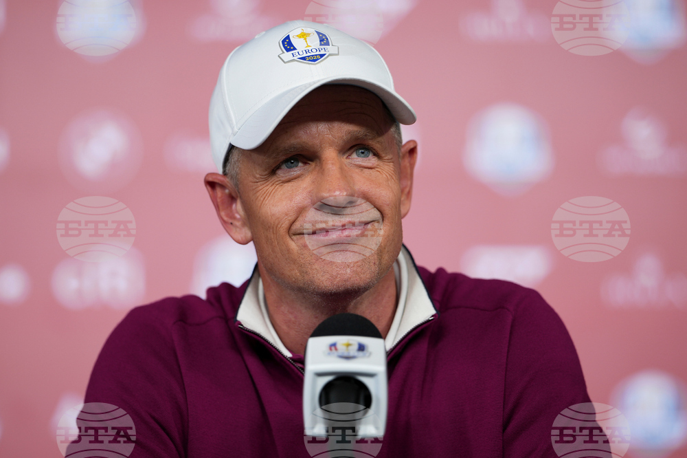 Europe captain Luke Donald speaks during a news conference at the Ryder Cup golf tournament, Thursday, Sept. 25, 2025, on the Bethpage Black golf course, in Farmingdale, N.Y. (AP Photo/Matt Slocum)