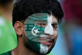 A fan with his face painted in the color of Pakistan flag during the Asia Cup Cricket match between Bangladesh and Pakistan at Dubai International Cricket stadium in Dubai, United Arab Emirates, Thursday, Sept. 25, 2025. (AP Photo/Altaf Qadri)