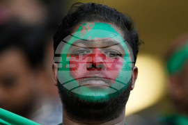 A fan with his face painted in the color of Bangladesh flag during the Asia Cup Cricket match between Bangladesh and Pakistan at Dubai International Cricket stadium in Dubai, United Arab Emirates, Thursday, Sept. 25, 2025. (AP Photo/Altaf Qadri)