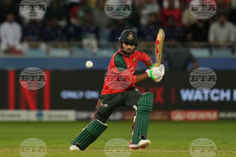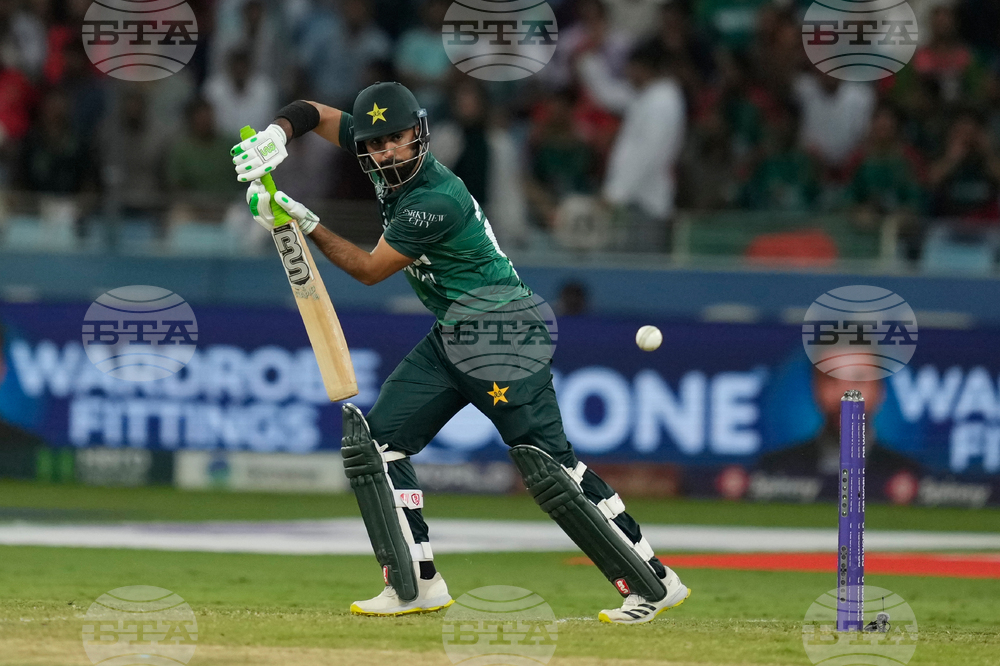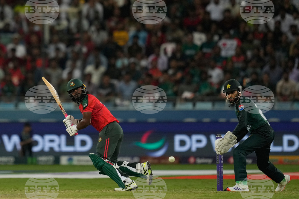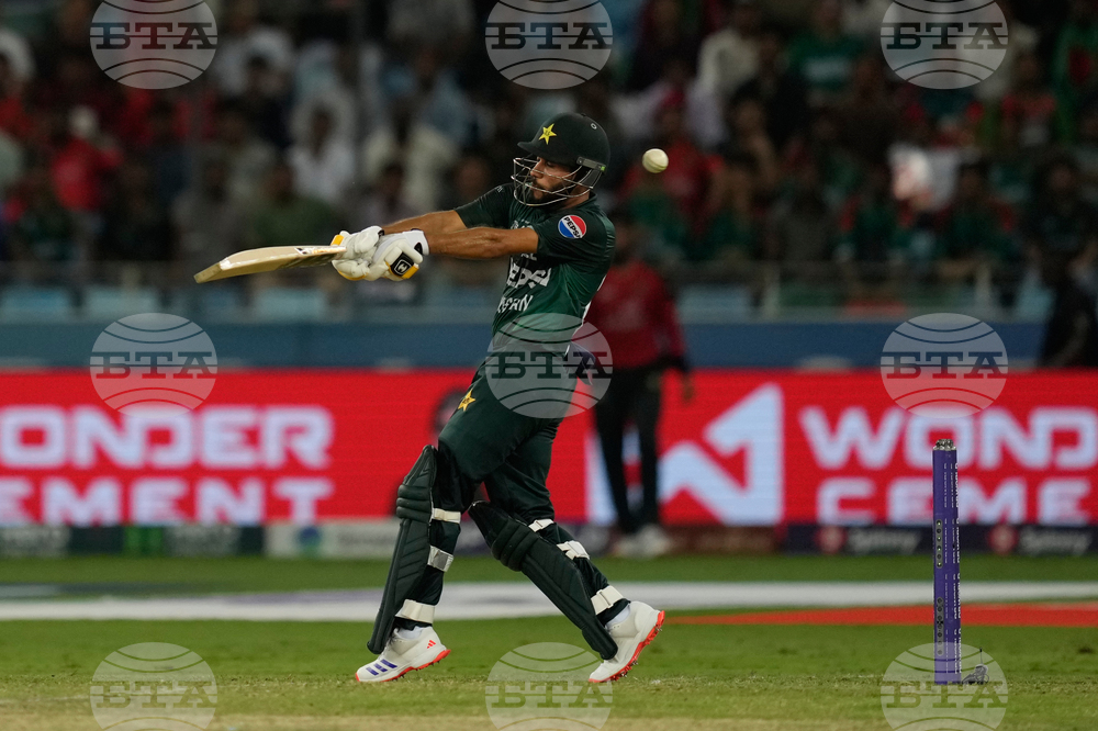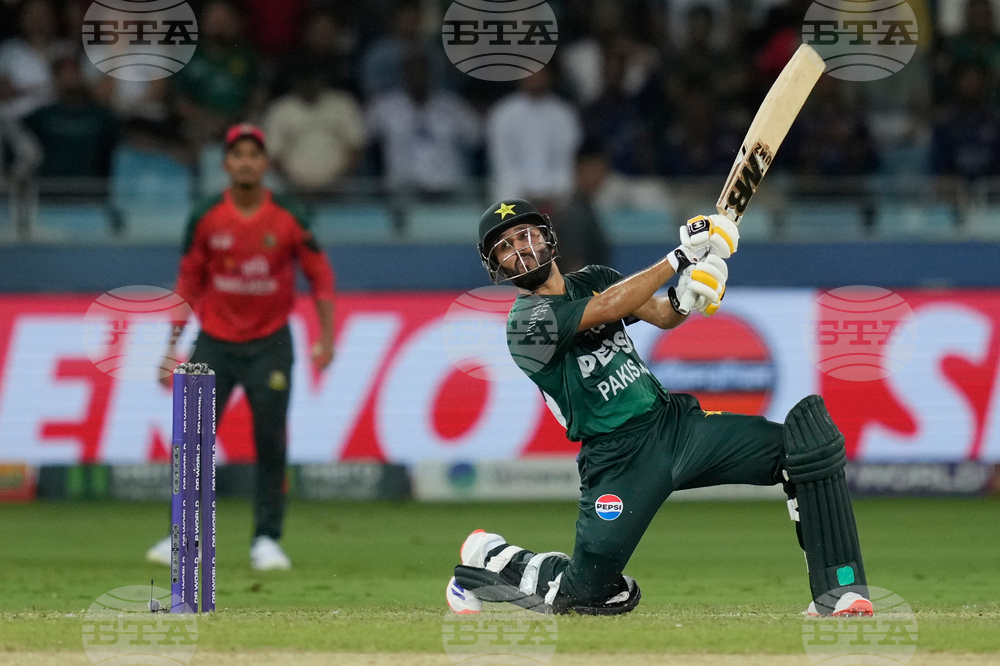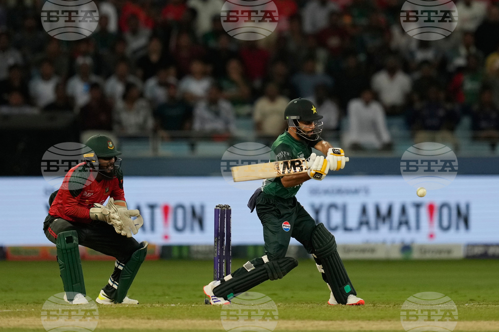 Bangladesh's Tanzim Hasan Sakib, right, bowls a delivery during the Asia Cup cricket match between Bangladesh and Pakistan at Dubai International Cricket stadium in Dubai, United Arab Emirates, Thursday, Sept. 25, 2025. (AP Photo/Altaf Qadri)
