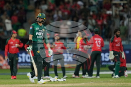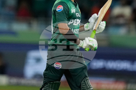 Pakistan's Hussain Talat walks off the field after losing his wicket during the Asia Cup Cricket match between Bangladesh and Pakistan at Dubai International Cricket stadium in Dubai, United Arab Emirates, Thursday, Sept. 25, 2025. (AP Photo/Altaf Qadri)