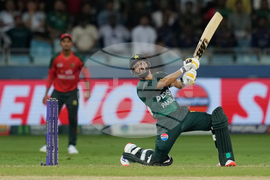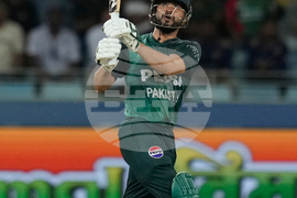 Pakistan's Mohammad Nawaz plays a shot during the Asia Cup cricket match between Bangladesh and Pakistan at Dubai International Cricket stadium in Dubai, United Arab Emirates, Thursday, Sept. 25, 2025. (AP Photo/Altaf Qadri)