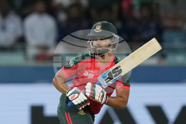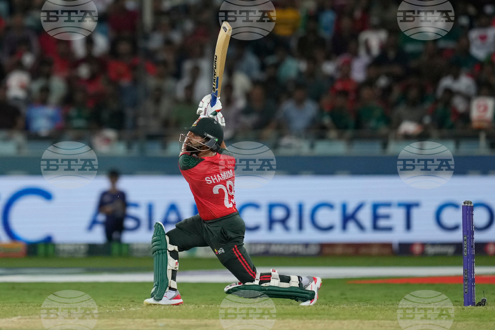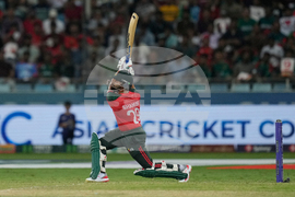 Bangladesh's Shamim Hossain plays a shot during the Asia Cup cricket match between Bangladesh and Pakistan at Dubai International Cricket stadium in Dubai, United Arab Emirates, Thursday, Sept. 25, 2025. (AP Photo/Altaf Qadri)