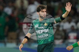 Pakistan's Shaheen Shah Afridi reacts as he walks off the field after losing his wicket during the Asia Cup cricket match between Bangladesh and Pakistan at Dubai International Cricket stadium in Dubai, United Arab Emirates, Thursday, Sept. 25, 2025. (AP Photo/Altaf Qadri)