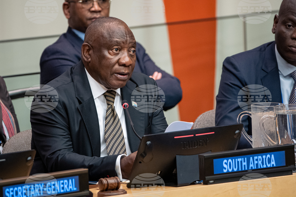 Cyril Ramaphosa, the president of South Africa, addresses the G20 meeting of the United Nations Economic and Social Council (ECOSOC) at United Nations headquarters, Thursday, Sept. 25, 2025. (AP Photo/Angelina Katsanis)