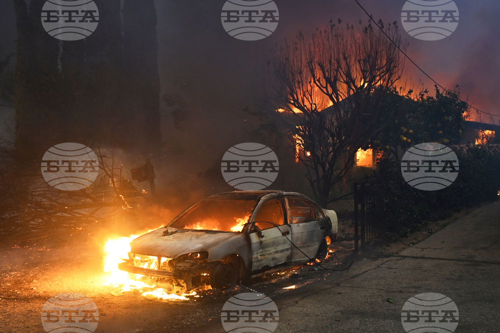 FILE - The Eaton Fire burns vehicles and structures Wednesday, Jan. 8, 2025 in Altadena, Calif. (AP Photo/Nic Coury, File)