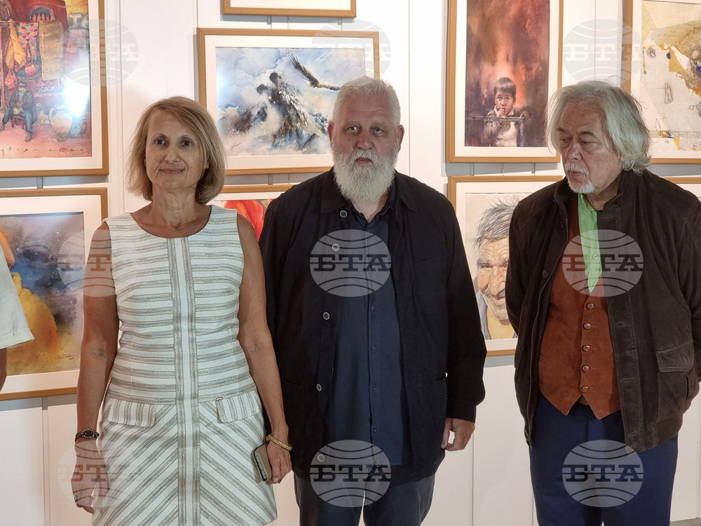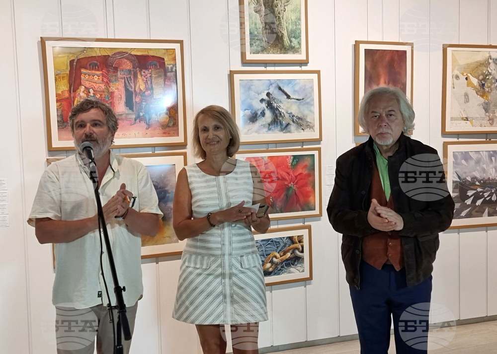 Ямбол (25 септември 2025) Художествена галерия (ХГ) „Хорж Папазов” в Ямбол е домакин на изложба с избрани творби от Международното триенале „Духът на акварела“ 2025. Общо 296 произведения на автори от цял свят са представени в залите на галерията. Съпътстващо събитие е самостоятелната изложба „Акварел” на ямболския художник Цветан Казанджиев – участник и носител на награди от различни издания на форума. На снимката: кураторите на изложбата Селма и Краси Тодорови, заедно с художника Цветан Казанджиев (в средата).