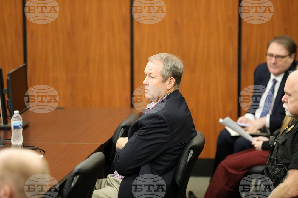 Russell Laffitte, seated center, listens to his lawyers speak as he pleads guilty in state court to bank fraud charges for his role in helping Alex Murdaugh steal money, Thursday, Sept. 25, 2025, in Columbia, S.C. (AP Photo/Jeffrey Collins)