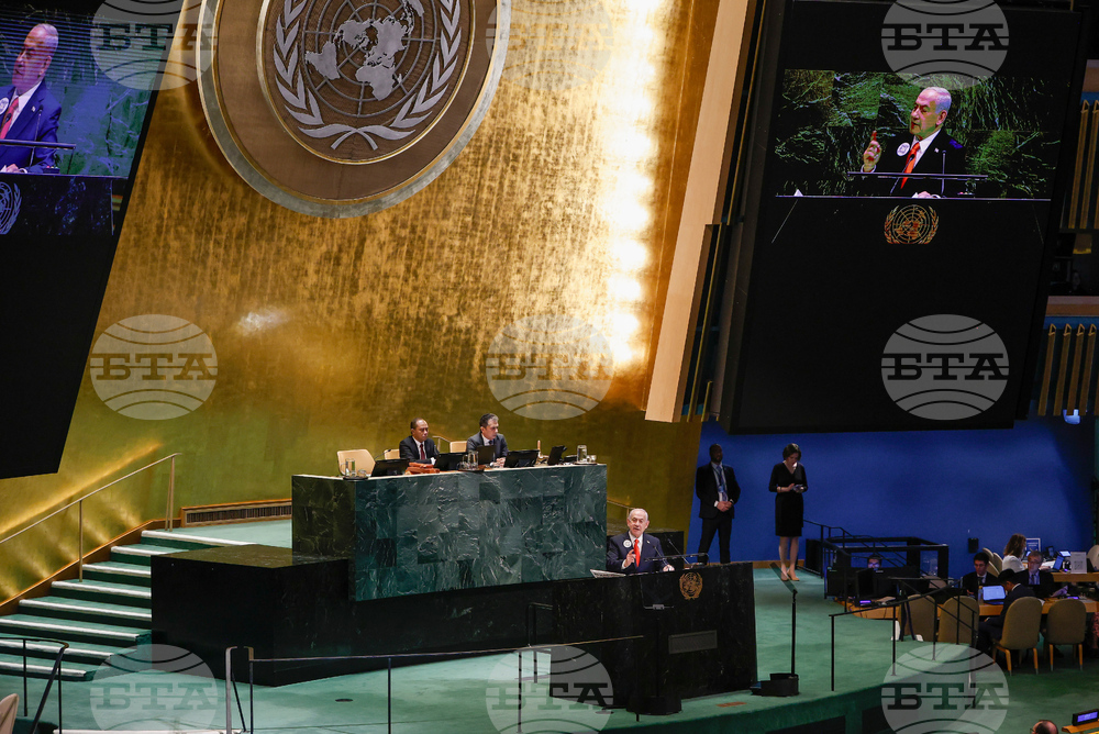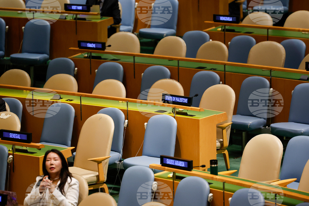 Palestinian delegate seats sit empty along with others as Israeli Prime Minister Benjamin Netanyahu speaks during the 80th session of the United Nations General Assembly, Friday, Sept. 26, 2025, at U.N. headquarters. (AP Photo/Stefan Jeremiah)