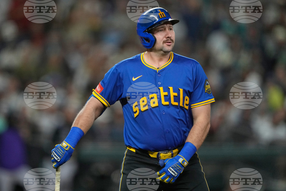 Seattle Mariners' Julio Rodriguez reacts after grounding out during the fourth inning of a baseball game against the Colorado Rockies, Thursday, Sept. 25, 2025, in Seattle. (AP Photo/Ryan Sun)