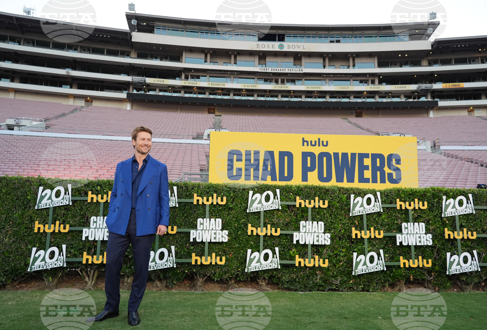 Glen Powell, the star/co-creator of "Chad Powers," arrives at the premiere of the Hulu series on Thursday, Sept. 25, 2025, at Rose Bowl Stadium in Pasadena, Calif. (AP Photo/Chris Pizzello)