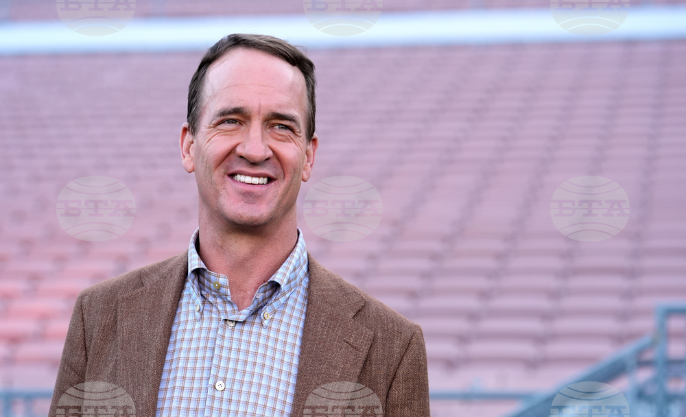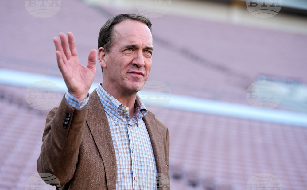 Peyton Manning, executive producer of "Chad Powers," arrives at the premiere of the Hulu series on Thursday, Sept. 25, 2025, at Rose Bowl Stadium in Pasadena, Calif. (AP Photo/Chris Pizzello)
