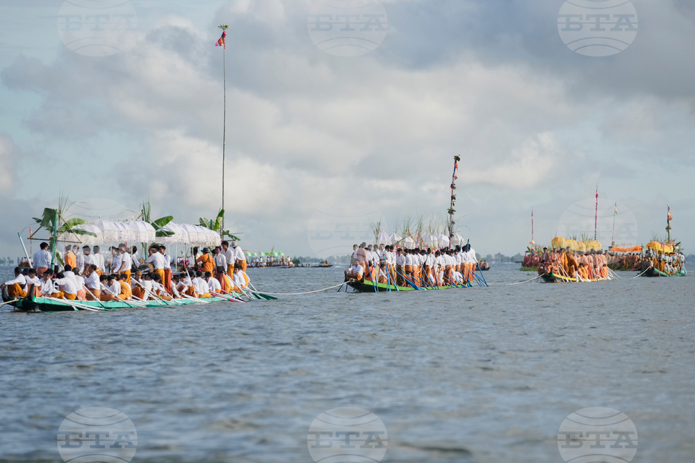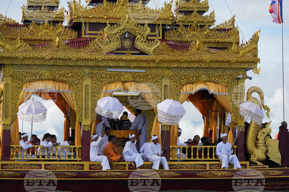 Ethnic Intha people participate during Phaung Daw Oo pagoda festival in Inle Lake, southern Shan State, Myanmar, Tuesday, Sept. 23, 2025. (AP Photo/Thein Zaw)