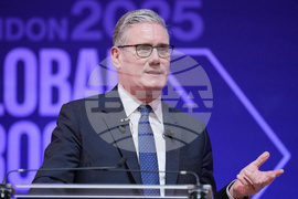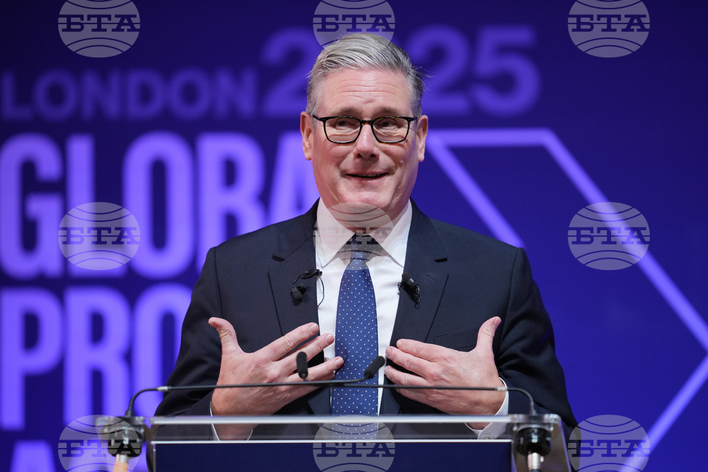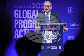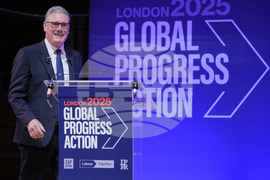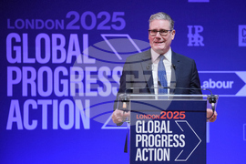 Britain's Prime Minister Keir Starmer speaking during the Progress Global Action Summit, in London, Friday, Sept. 26, 2025. (AP Photo/Kin Cheung)