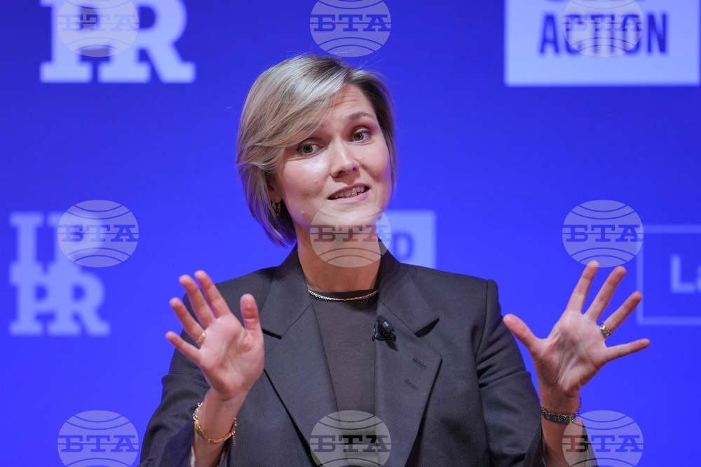Iceland Prime Minister Kristrún Mjöll Frostadóttir gestures as she speaks during the Progress Global Action Summit, in London, Friday, Sept. 26, 2025. (AP Photo/Kin Cheung)