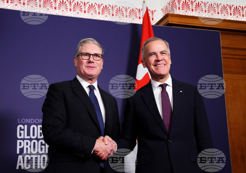 Prime Minister Mark Carney takes part in a bilateral meeting with British Prime Minister Keir Starmer during the Global Progress Action Summit in London on Friday, Sept. 26, 2025. (Sean Kilpatrick /The Canadian Press via AP)