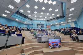 Плевен (26 септември 2025) В Медицинския университет в Плевен започна Седмата национална конференция по епидемиология с международно участие на Българското научно дружество по епидемиология на инфекциозните и неинфекциозните болести (БНДЕИНБ). Научният форум се провежда в Телекомуникационния център (ТЕЛЕЦ) на университета и е под надслов „Здраве за всички чрез ефективна профилактика и терапия”. На снимката: конференцията открива проф. д-р Ани Кеворкян, председател на Българското научно дружество по епидемиология на инфекциозните и неинфекциозните болести.