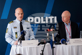 Peter Ekebjaerg from the National Police, speaks during a press conference at the Police Headquarters, in Copenhagen, Denmark, Friday Sept. 26, 2025. (Sebastian Elias Uth/Ritzau Scanpix via AP)
