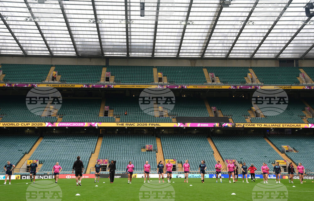 Canada players during the team run at the Allianz Stadium, London, Friday Sept. 26, 2025, a day ahead of facing England in the final match of the Women's Rugby World Cup. (Ben Whitley/PA via AP)