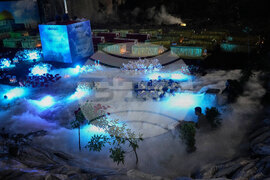 Children attend a gathering at the site where Hezbollah leader Hassan Nasrallah was killed in Israeli airstrikes on Sept. 27, 2024, a day before the first anniversary of his death, in the Haret Hreik suburb south of Beirut, Lebanon, Friday, April 26, 2025. (AP Photo/Hassan Ammar)
