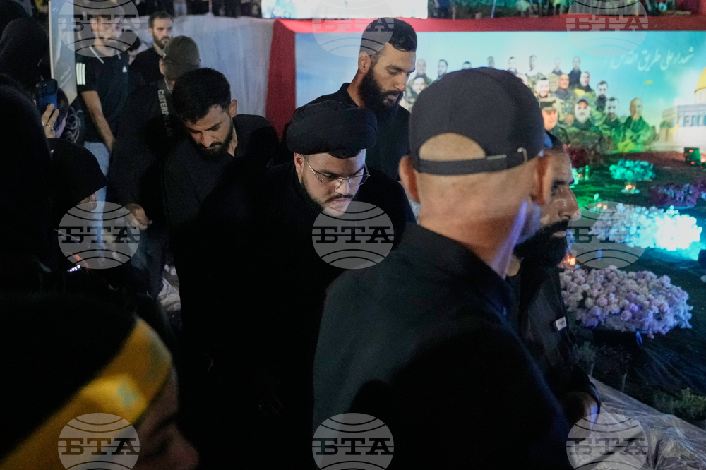 Mohammad Mahdi Nasrallah, center, son of former Hezbollah leader Hassan Nasrallah, arrives for a gathering at the site where his father was killed in Israeli airstrikes on Sept. 27, 2024, a day before the first anniversary of his death, in the Haret Hreik suburb south of Beirut, Lebanon, Friday, April 26, 2025. (AP Photo/Hassan Ammar)