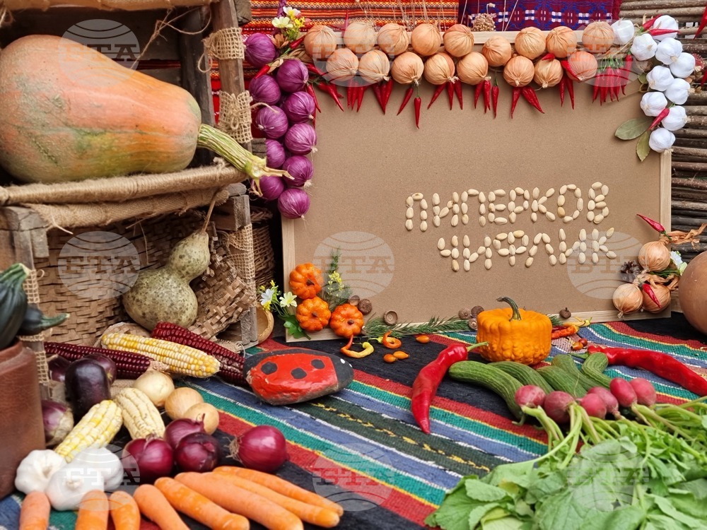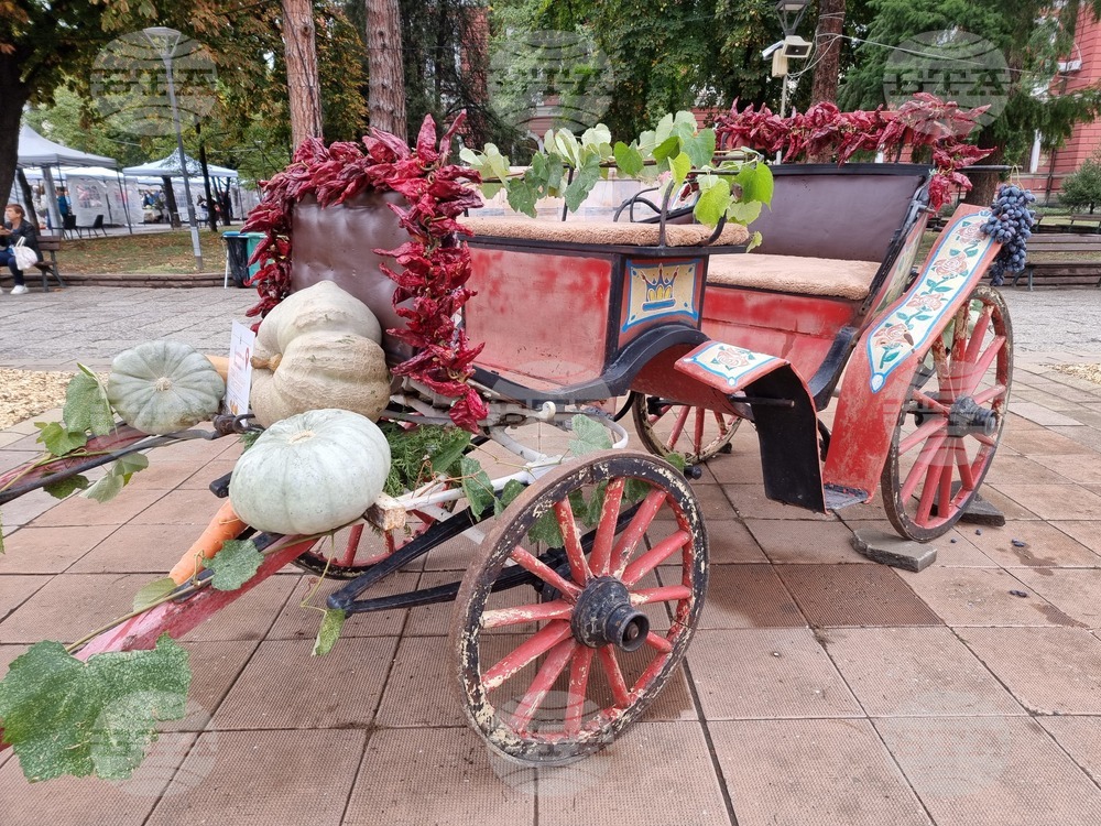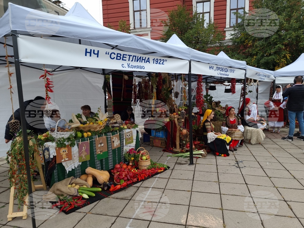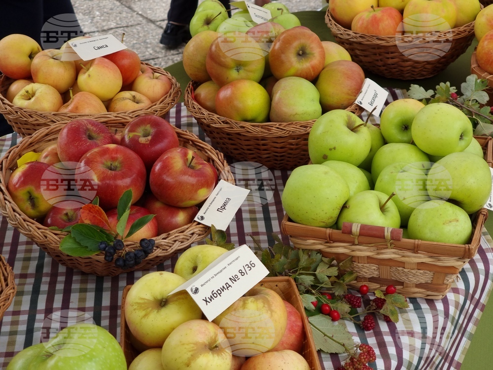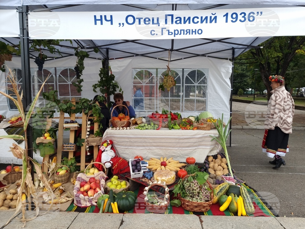 Кюстендил (27 септември 2025) В Кюстендил официално бе открит „Празник на плодородието“ 2025 г. Производители от региона, читалища и организации, се представят с художествено аранжирани маси с плодове и зеленчуци, а художници и занаятчии показват свои оригинални художествени произведения, изложени в центъра на града в дните на празника. Програмата включва представяне на сортове ябълки от Институт по земеделие - Кюстендил и музикална програма. На снимката: доц. д-р Деница Сербезова (вдясно) - главен научен секретар на Селскостопанска академия – София.