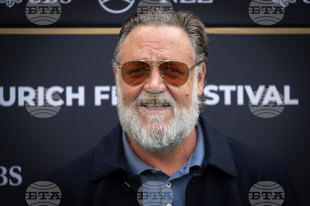 Russell Crowe poses on the Green Carpet of the 21th Zurich Film Festival (ZFF) in Zurich, Switzerland, Saturday, Sept. 27, 2025. (Andreas Becker/Keystone via AP)