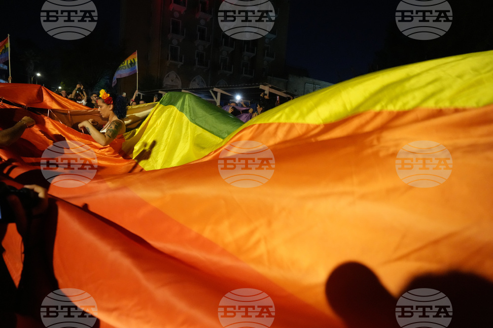 Greek Cypriot and Turkish Cypriot LGBTQ groups take part in a Pride parade at Ledra Palace area inside the U.N buffer zone in divided capital Nicosia, Cyprus, on Saturday, Sept. 27, 2025. (AP Photo/Petros Karadjias)