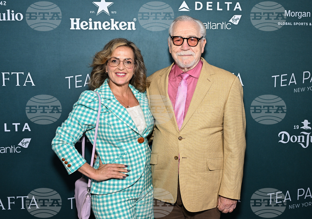 Brian Cox, right, and Nicole Ansari-Cox attend BAFTA North America's New York Tea Party at the Mandarin Oriental on Saturday, Sept. 27, 2025, in New York. (Photo by Evan Agostini/Invision/AP)