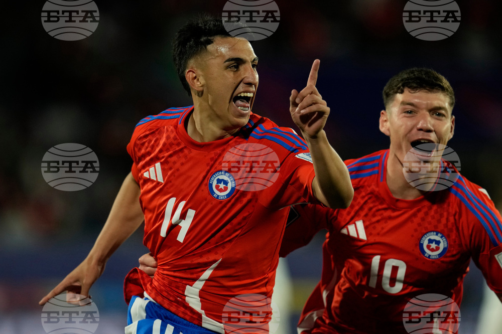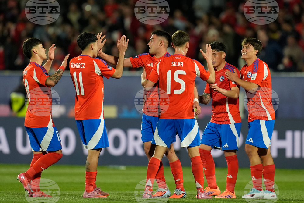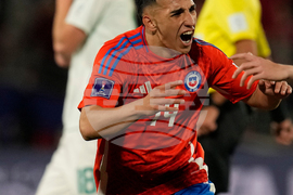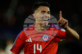 Chile's Ian Garguez celebrates after scoring his side's second goal against New Zealand during a FIFA U-20 World Cup Group A soccer match at National Stadium in Santiago, Chile, Saturday, Sept. 27, 2025. (AP Photo/Esteban Felix)